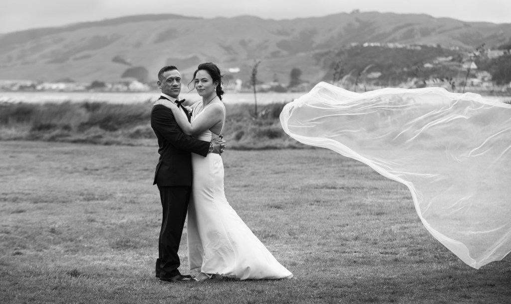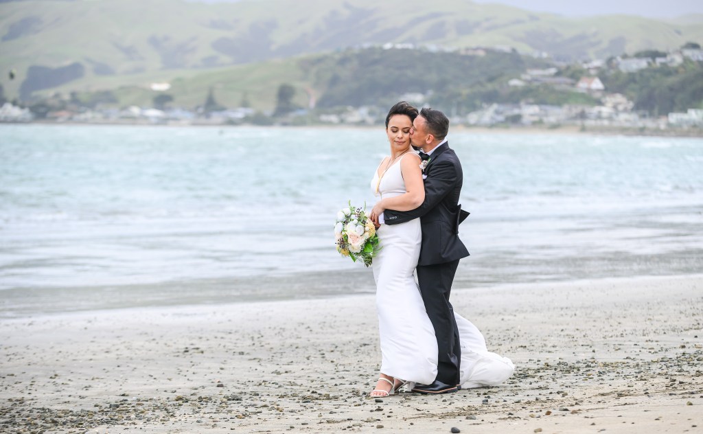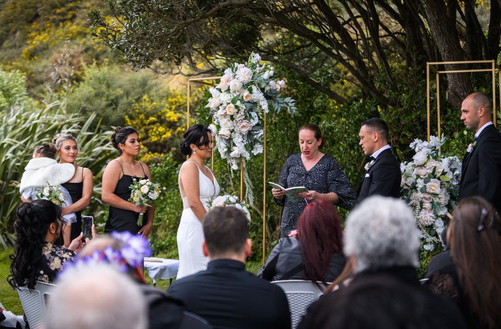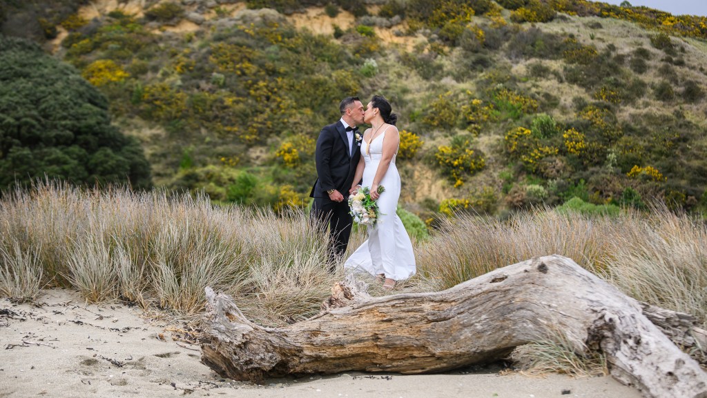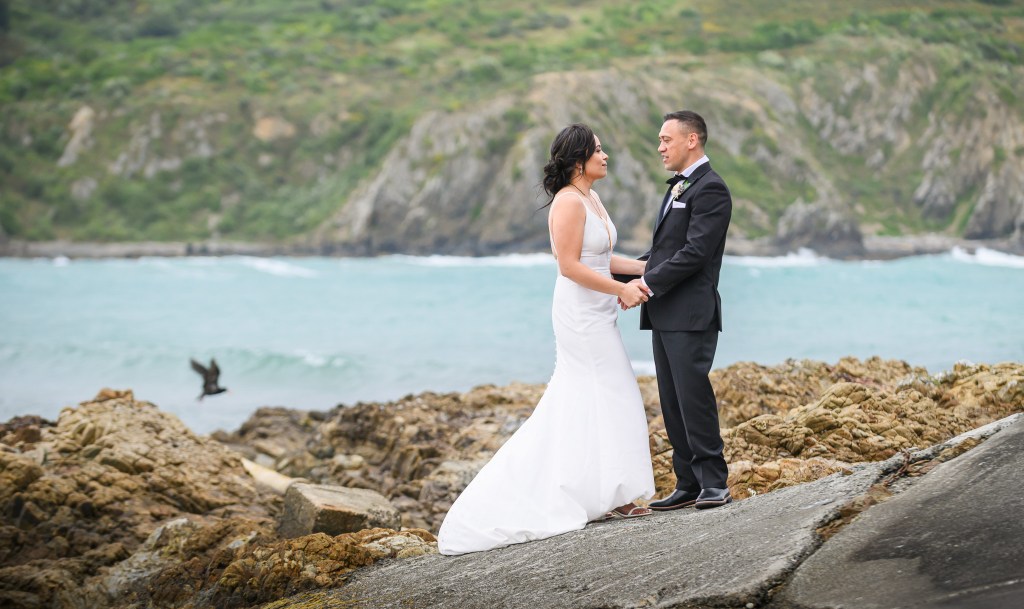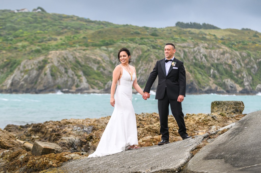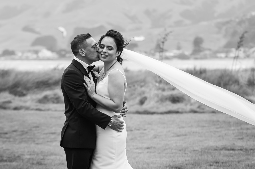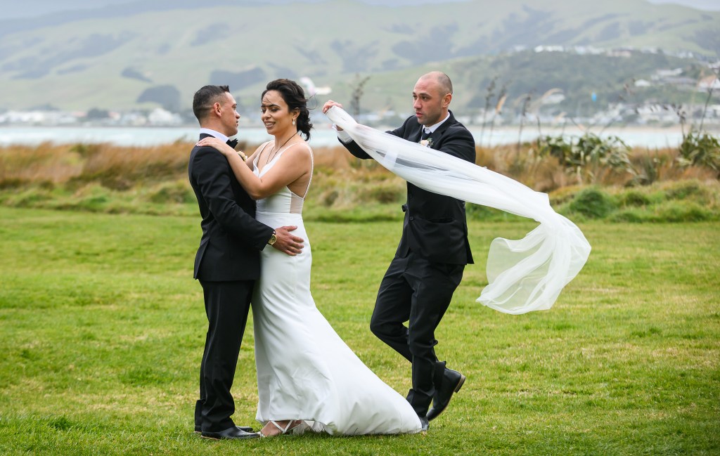 And down the bay, a bit more sheltered corner was found. Still windy, still chilly, but at least no fear of no one been flown off the cliff. And married they got. This beautiful couple, parents of three beautiful children, surrounded by their families and friends. The wind stealing her veil over and over again, the bridal party holding onto flower arrangements, and the celebrant trying to raise her voice over the wind for everyone to hear them saying the magic words.