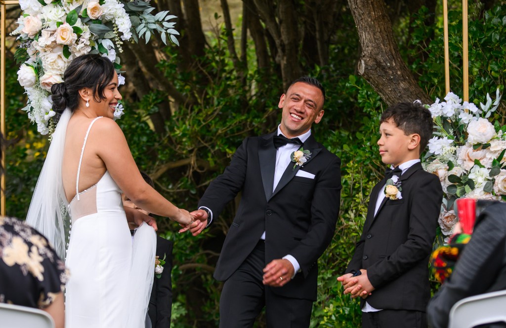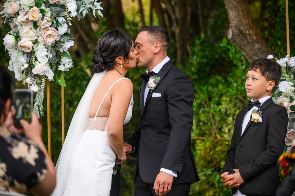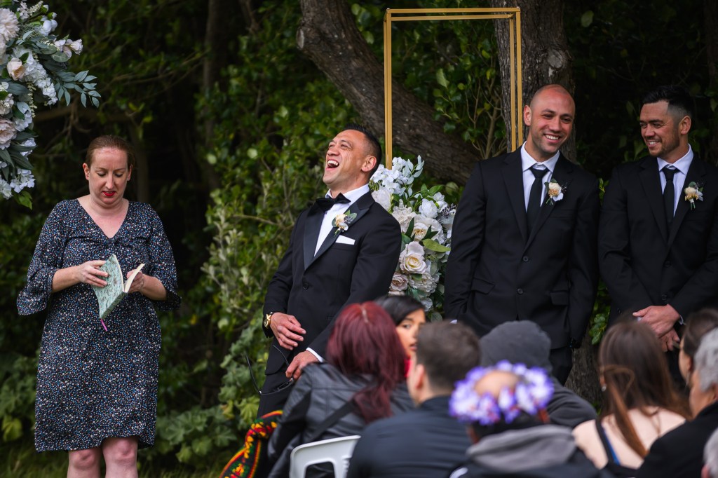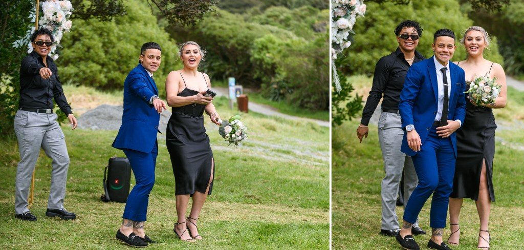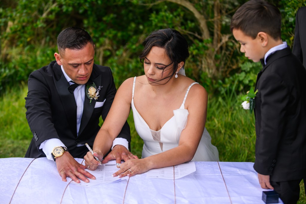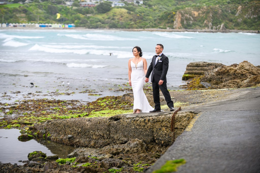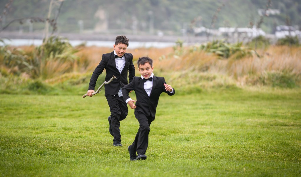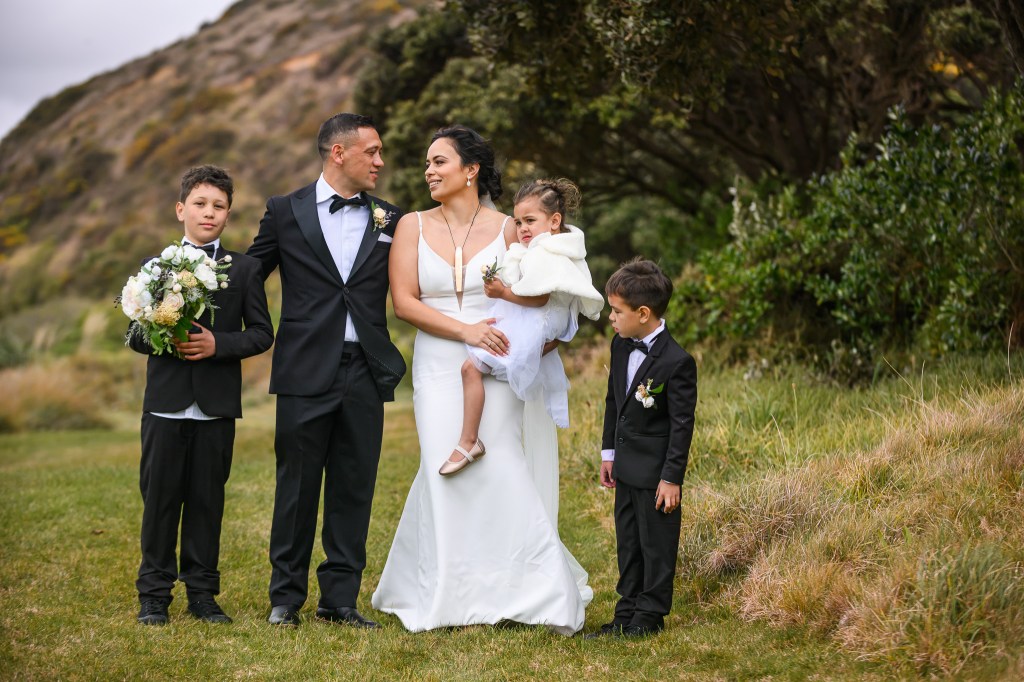 And down the bay, a bit more sheltered corner was found. Still windy, still chilly, but at least no fear of no one been flown off the cliff. And married they got. This beautiful couple, parents of three beautiful children, surrounded by their families and friends. The wind stealing her veil over and over again, the bridal party holding onto flower arrangements, and the celebrant trying to raise her voice over the wind for everyone to hear them saying the magic words.