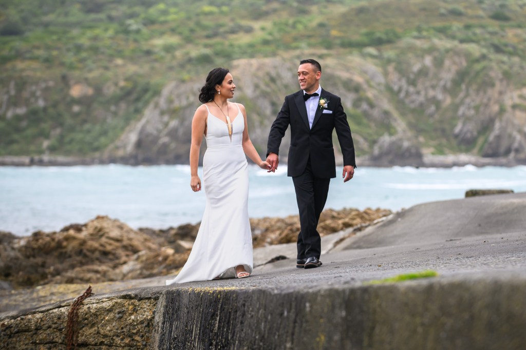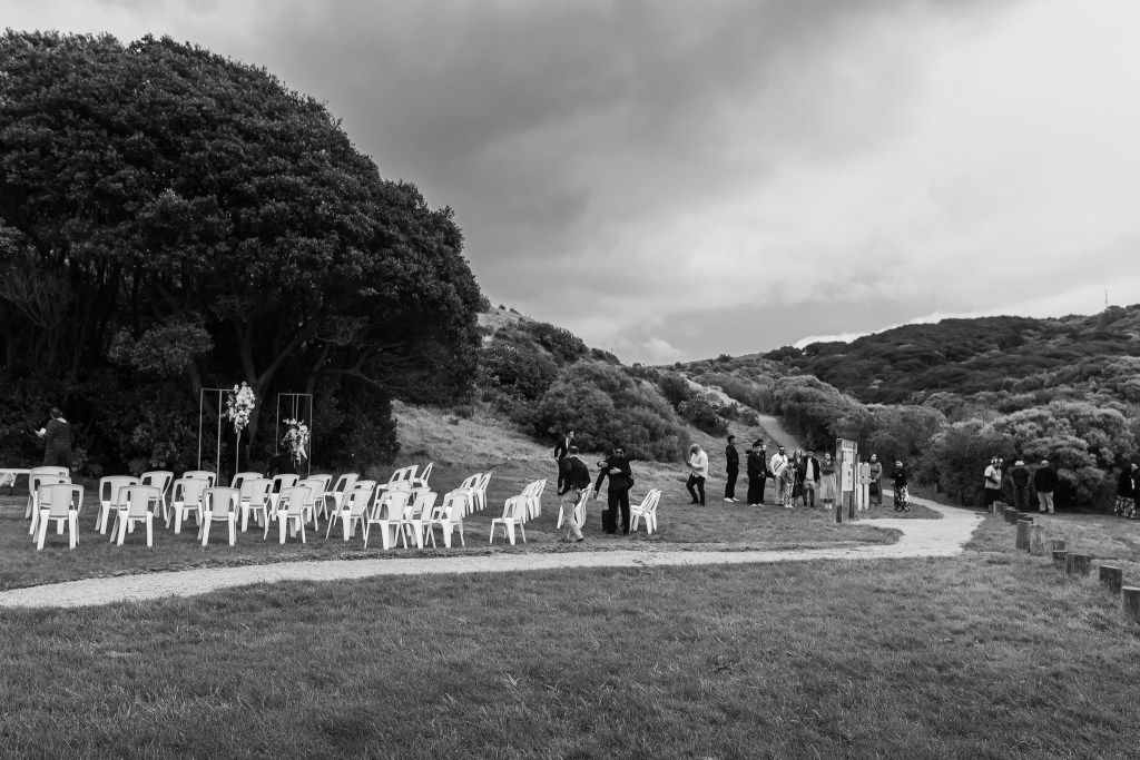 A bit chilly? A bit windy? That would be such an understatement of the conditions on Larissa & David’s wedding day. It isn’t called Windy Welly for nothing, and those super gusty northerlies made sure that their planned ceremony spot on the cliff-top would be a no-go. It was impossible to even stand still, no way the original plan could go on.